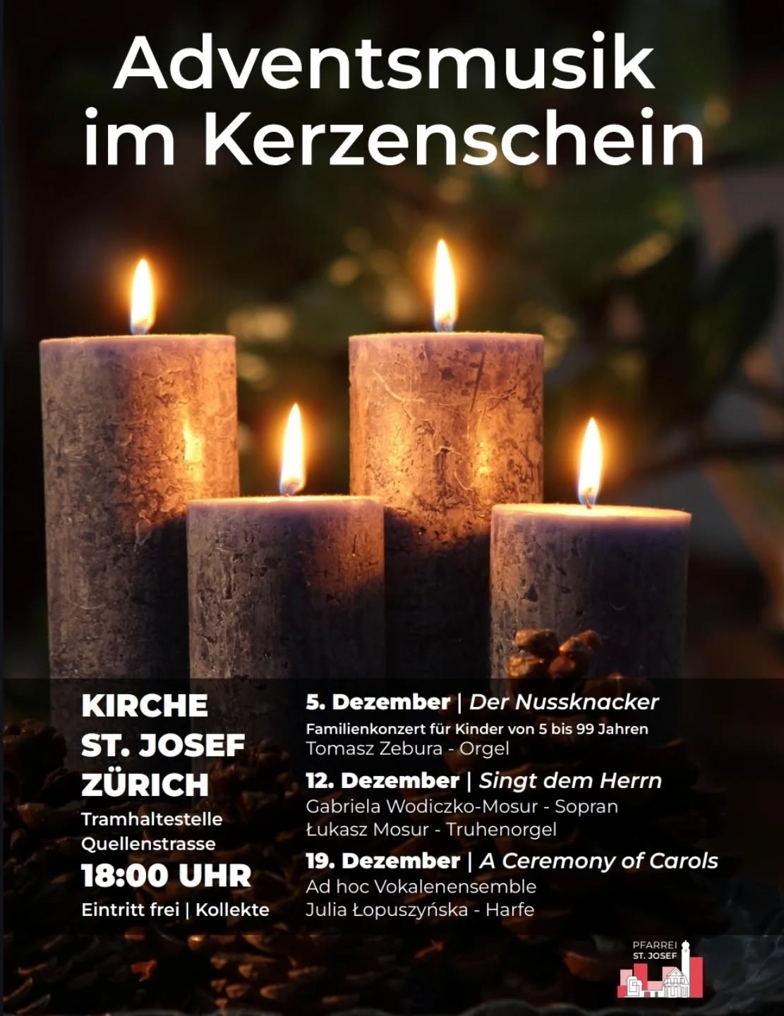 19. Dezember 2025, 18:00 Uhr Kirche St. Josef, Zürich Adventsmusik im Kerzenschein Britten - A Ceremony of Carols op. 28 Ad Hoc Vokalensemble (Stefanie Knorr, Gabriela Wodiczko-Mosur, Alexandra Busch, Larissa Bretscher, Bettina Weder, Angela Wiedmer) Harfe: Julia Lopuszinska Leitung: Tomasz Zebura Flyer |